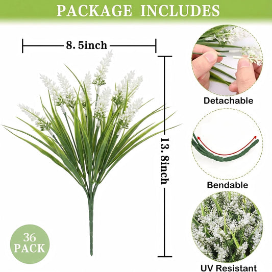 Waipfaru 20 Bundles Artificial Lavender Plants Outdoor, UV Resistant Fake Flowers,Realistic Faux Plastic Lavender Shrubs for Porch Garden Window Box Home Decor(White)