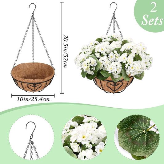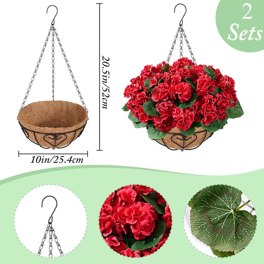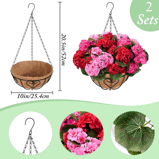 Waipfaru 2 Pack Artificial Geraniums Hanging Basket,UV Resistant Faux Silk Flowers for Outdoors,Realistic Fake Hanging Plants for Home Garden Decor