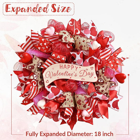 Waipfaru 18" Valentines Day Mesh Wreath for Front Door,Handmade Red & Pink Deco Mesh Wreath with Wooden Sign,Romantic Heart Ribbon Door Hanger for Valentine Decorations